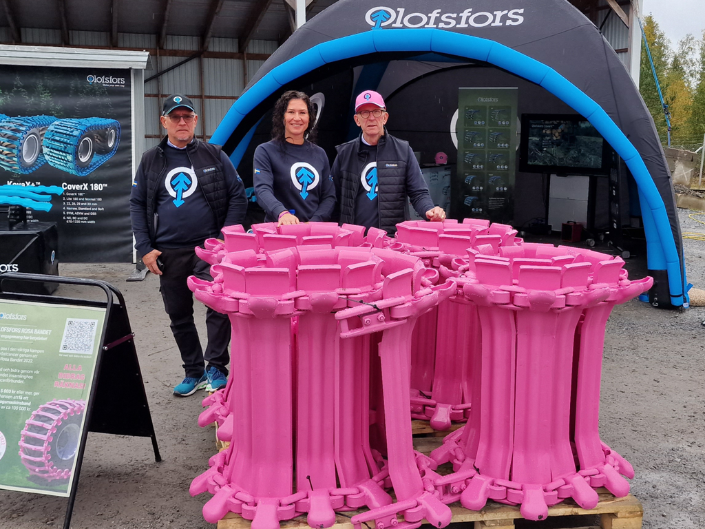 Olofsfors has created its own fundraising page on the Breast Cancer Association main site where everyone can donate any amount. They have also donated a pink forest machine track to the Breast Cancer Association, which after completion of the fundraiser, will be given to a person or a company that donated a gift of 5000 SEK or more.